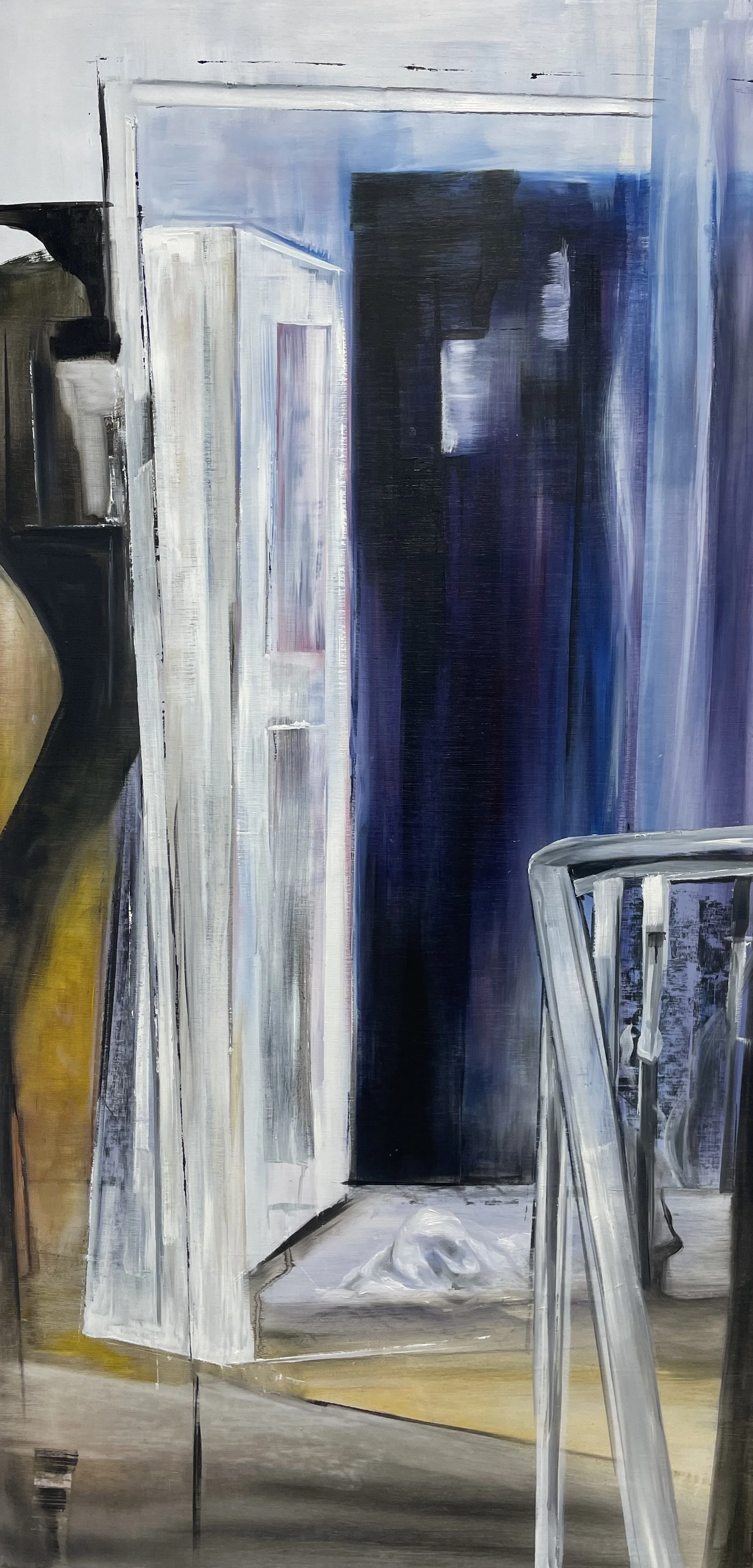 My work is based on personal experience and influenced by painters George Shaw and Lisa Brice. It is, I hope, a sensitive response to challenging aspects of life. I seek a sense of déjà vu. Through traces left by the absence of people, I render familiar choices we all face.