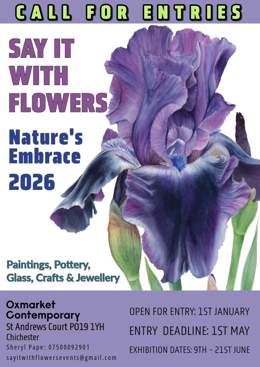 Open Call for Say It With Flowers 2026 - Sheryl Pape the founder and organiser for Say It With Flowers Exhibition invites you to an Open Call for artwork to be held at Oxmarket in June. This year the exhibition will be across both of our gallery spaces and will coincide with the Festival of Flowers at Chichester Cathedral. Say It With Flowers theme this year will be Nature’s Embrace in line with the Cathedral’s theme.